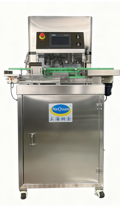 这是一款移动式玻璃瓶灌封一体机。在密封状态下进行等压灌装,本机具有自动进瓶、洗瓶、吹干、CO2置换、灌装、激沫、自动落盖、封口、瓶身冲洗等功能,采用高精度全电子式灌装阀、PLC自动控制灌装和CIP自动清洗,一键升降换型。